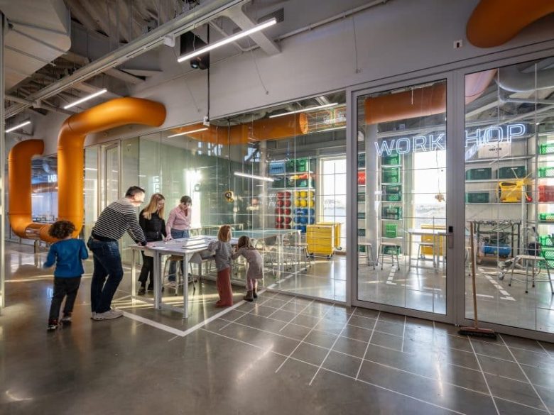 Материалы и цветовые решения подчёркивают индустриальный характер здания, при этом сохраняя современную и чистую эстетику.
