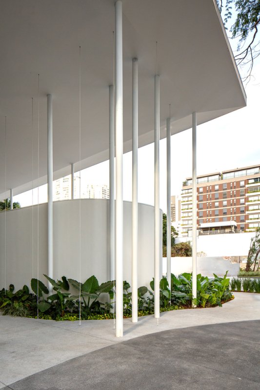 Pavilion Tess — архитектура, открытая к общественному пространству вид со стороны Pavilion Tess Проект Pavilion Tess, разработанный бразильским Estúdio Leonardo Zanatta, представляет собой современный архитектурный павильон, органично вписанный в жилой район Brooklin в Сан-Паулу. вдох в павильон Pavilion Tess Этот объект сочетает в себе лёгкость форм, продуманную экологическую стратегию и функциональную гибкость, предлагая новый взгляд на общественное пространство. вдох в павильон стеклянные витражи Pavilion Tess Здание площадью около 350 м² стало примером внимательного отношения к климату и контексту: здесь использованы подходы пассивной тепловой эффективности и структурной развязки, что обеспечивает естественную вентиляцию и постоянное затенение под плоской крышей. вид вечером на павильон Pavilion Tess Открытия выполнены с учётом направления солнечных лучей, что помогает минимизировать перегрев летом и эффективно использовать тепло зимой для повышения комфортного микроклимата. вид сбоку на Pavilion Tess Концепция и структура — от арфы к пространственной гармонии Центральным элементом архитектуры является ритмичная металлическая конструкция, вдохновлённая образом арфы. входная зона Pavilion Tess Эта система из тонких колонн и натяжных элементов служит не только опорой, но и пространственной матрицей, задающей организованный, но лёгкий характер павильону. деревянные перегородки Pavilion Tess Узлы конструкции оставлены открытыми, без облицовки, что подчёркивает ясность архитектурной логики и честность материалов. зеленая зона вокруг павильона Pavilion Tess Расширенная крыша образует зоны перехода между интерьером и экстерьером, создавая тени и мягкие переходы света. зелень на крыше павильона Pavilion Tess Визуальный язык и супрематистское влияние Площадь под крышей заполнена архитектурными объёмами, которые расположены в духе русской школы супрематизма — с акцентом на простые геометрические формы, различную ориентацию и визуальную динамику. зелень у павильона Pavilion Tess Это избегает статичности образа и позволяет по-разному воспринимать павильон при перемещении вокруг него. зона кухни Pavilion Tess Такой визуальный язык делает пространство не только функциональным, но и эмоционально насыщенным, создавая ощущение перемещения и диалога между формой и зрителем. зона перед павильоном Pavilion Tess Горизонтальность, контекст и городское присутствие Расположение в преимущественно жилом районе и низкая горизонтальная композиция помогают павильону уважительно вписаться в окружающую среду. стеклянные витражи Pavilion Tess Строение не доминирует над соседними зданиями, а дополняет их, предлагая пространство для взаимодействия — тихое, но заметное. столбы у павильона Pavilion Tess В архитектуре преобладает визуальная прозрачность и «формальное молчание», что делает Pavilion Tess привлекательным и доступным объектом как для посетителей, так и для жителей. Функциональная гибкость и культурное пространство Изначально задуманное как коммерческое пространство, здание было спроектировано с возможностью адаптации под культурные мероприятия, временные выставки и социальные события. Архитектура при этом не создаёт формального разделения между публичными и частными зонами, что усиливает ощущение открытости. территория вдоль павильона Pavilion Tess Такая гибкость делает Pavilion Tess не просто архитектурным объектом, но и