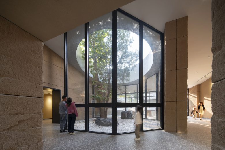 Круглая галерея, встроенная в ландшафт, объединяет старые постройки — сторожки, амбары, кельи — в единый ансамбль, центром которого становится созерцательный сад. Это пространство повседневной, неформальной жизни.