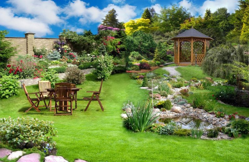 Оформление участка на даче или около загородного дома станет не только полезным, но и интересным занятием. Некоторые работы можно делать самостоятельно. Пригодится опыт садоводства, знания в сфере ландшафтного дизайна, умение пользоваться различными инструментами и работать с материалами и заготовками. Первоочередной задачей является предварительное изучение характеристик земельного надела. Климатические условия, уклон, качество почвы, географическое ориентирование, глубина залегания подземных вод — только некоторые параметры, от которых будет зависеть планировка участка и окончательный бюджет. Некоторые минусы удастся превратить в плюсы. Комфорт зависит от правильности расстановки приоритетов. Определение размеров и расположения для зон — первый этап декорирования. Потом нужно придумать, какие элементы оформления будут оборудоваться для каждой из них.