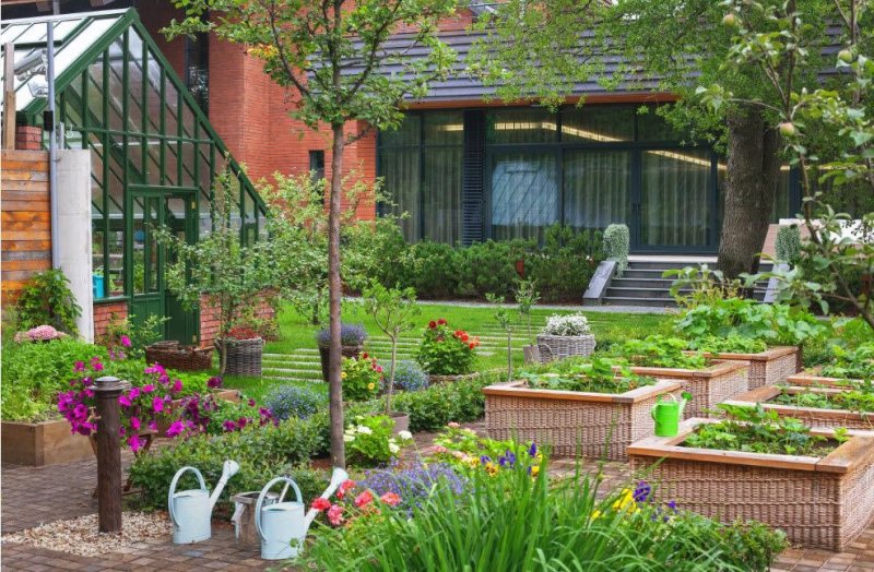 Эта территория требует тщательного ухода. Садовая подзона — декоративная, но ее растения также могут плодоносить. Сад украшают всеми возможными способами: постриженными деревьями и кустами, цветочными композициями, альпинариями, фонтанами, статуэтками. Чтобы перемещаться по саду, нужно проложить облицованные дорожки в виде закругленных линий. Клумбы можно делать вертикальными, подпирая их деревянными брусьями. Сочетание деревьев, кустов и цветов необходимо обдумывать, руководствуясь при этом общепринятыми правилами. Огородная зона должна получать много солнечного света. Почву насыщают азотными удобрениями. Обогатить ее азотом могут и некоторые растения, преимущественно бобовые. Места под высадку культур нужно чередовать. При холодных климатических условиях функцию огорода выполняет тепличное помещение. Нет потребности задумываться над визуальным оформлением огорода.