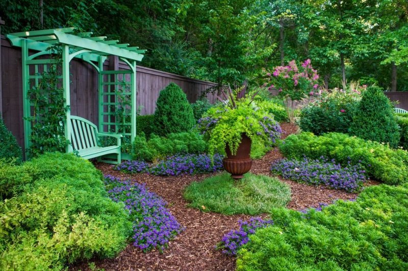 Данный стиль понравится сторонникам классического садового искусства. Он сочетает строгие линии и геометрическую гармонию. В общую композицию входит и дом. Регулярный (формальный) стиль включает в себя черты, которые можно сочетать или использовать отдельно. К ним относится центральная ось с делением участка на две одинаковые половины с ровными ответвлениями без изгибов. Объекты размещаются зеркально, во всем соблюдается симметрия. Входная подзона делается большой, с растительностью по периметру. Обязательными элементами являются стриженые кусты и деревья. Для украшения сада используют статуи, лестницы, фонтаны и другие малые архитектурные формы. Найдется место для арабесок, бордюров, рабаток и цветников. На небольших участках реализовать такой стиль оформления будет затруднительно. Крупные земельные наделы дополнительно украшаются большим садовым партером.