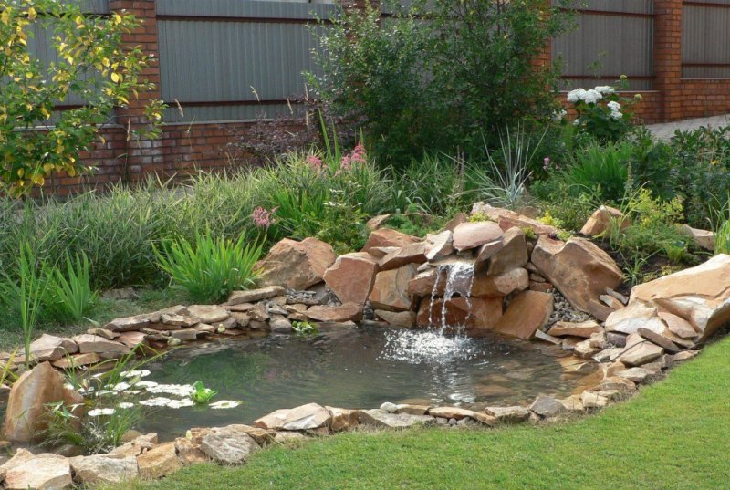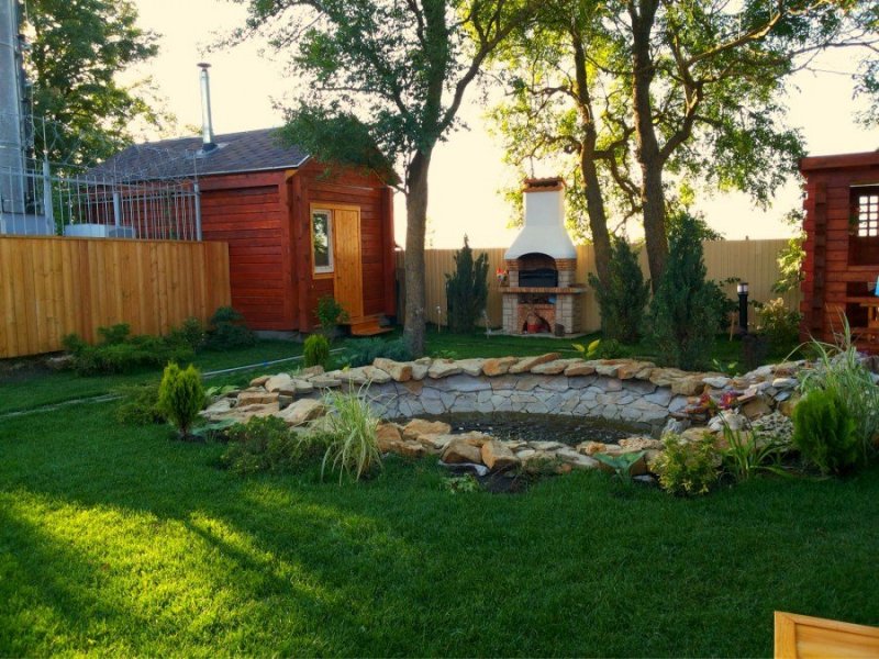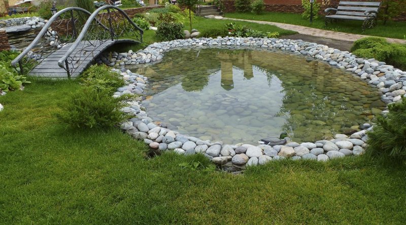 В самом начале определяются с местом для котлована. Предпочтительно, чтобы неподалеку была перегородка в виде забора или посадки. Не стоит размещать искусственный водоем на территории, которая получает слишком много солнечного света на протяжении года, потому что таким образом провоцируется рост водорослей и микроорганизмов. Роль базового материала выполняет пленка ПВХ или железобетонная конструкция. Пленка гибкая, форму можно изменять. Во втором случае берега заливают бетоном, укрепленным арматурными прутьями. Это надежная и герметичная конструкция. Самым интересным вариантом может оказаться искусственный магазинный водоем. Но преимущество в виде необычной формы нивелируется тем, что рыть котлован будет сложнее. Яму можно подготовить без лишних приспособлений. Ее стенки очищают и утрамбовывают, посыпают чистым песком.