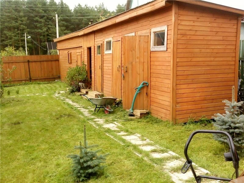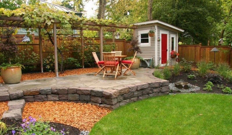 Ее размещают в самых отдаленных частях надела. Зона предназначается для сараев, технических объектов, складов с инструментами, клеток для содержания птицы и скота. Также здесь размещают садовую мебель. Поблизости делают свалку с отходными материалами и компостную яму. Их нужно скрыть или отгородить, чтобы они не портили общей картины. В качестве живой изгороди могут выступать заросли розы. Размещают хозяйственно-бытовой блок на северо-западе участка. В этой зоне будут уместны биотуалеты. Между хозяйственно-бытовой частью и зоной для отдыха прокладывают дорожку. Минимальная рекомендуемая площадь хозяйственно-бытового блока — 18 кв. м. Территорию этой зоны нужно будет покрыть такими материалами, которые не помешают проводить там уборку. Пространство вокруг выкладывают деревянным настилом или камнем.