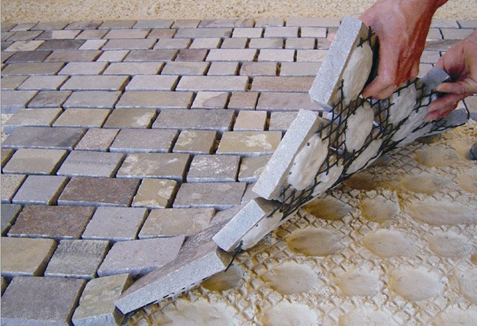 Раствор готовится путем смешивания цемента, песка, воды. Используя фигурные формы, можно имитировать брусчатку, тротуарную плитку. При этом цена такого удовольствия будет значительно разниться со стоимостью оригинальных покрытий. Развитие этой технологии изменило устройство форм, они стали пластиковыми (ранее использовался металл и образцы приходилось заливать поштучно).