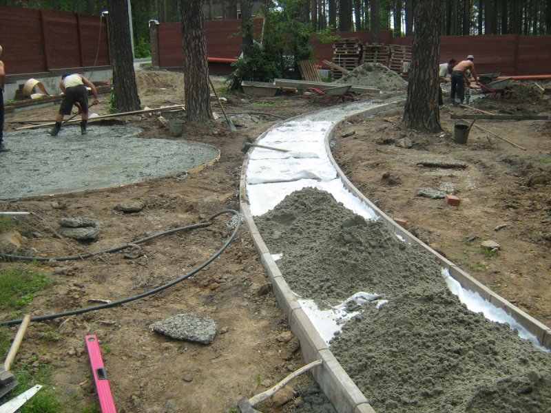 Чтобы на залитой тропинке не образовалась трещина, бетонное покрытие необходимо увлажнять в течение нескольких дней.