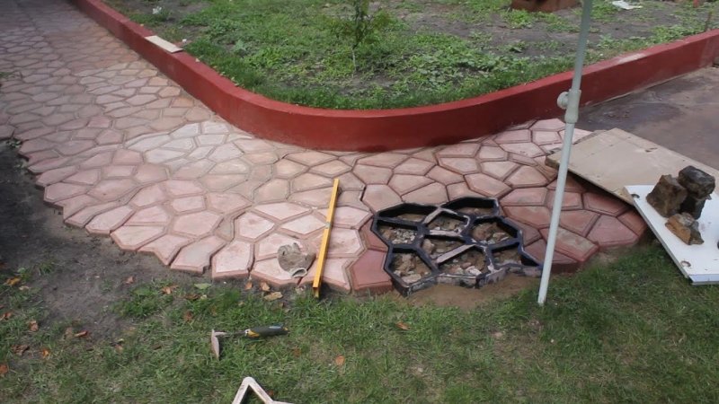 Для садовой дорожки следует выбирать более плотные крышки. В зависимости от срока эксплуатации, определяется тип основания такого покрытия. Если достаточно одного года службы, то можно материал просто вдавить в землю, в противном случае потребуется цементный раствор. Если крышка лопнула или не подходит по цвету, ее можно заменить, используя нож, крючок.
