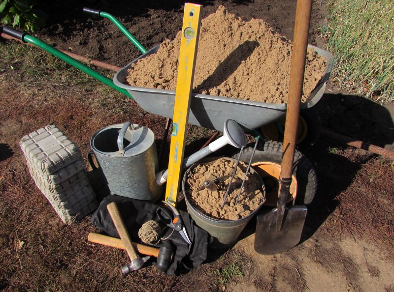 Составленный чертеж, выполненная разметка – это первая стадия. Следующей точкой станет подготовительная фаза предстоящих работ, на этом этапе требуется выбрать материалы и инструменты. Далее приступают к земляным работам.