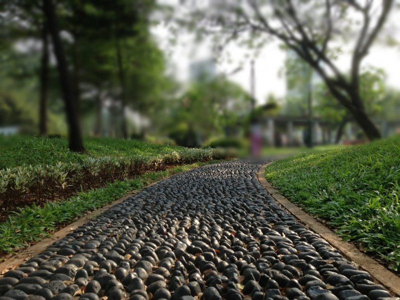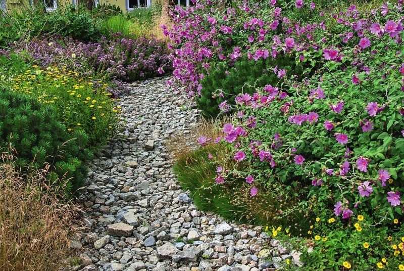 Тропинки еще называют мягкими. Верхний слой такого покрытия состоит из гальки, гравия, измельченных остатков стройматериалов. Такой материал предназначен для пеших прогулок. Ходить очень комфортно. Передвижение по нему технических средств крайне неудобно.