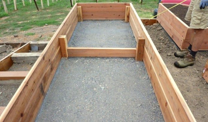 Короб обычно изготавливают из прочных долговечных материалов по предварительному проекту. Дно выстилают металлической сеткой или рейками из пластика, следуя инструкции. Это минимизирует нападки грызунов. Приподнятую грядку легко соорудить своими руками. Для создания высоких конструкций с плодородной землей можно использовать дерево, камень, металл, пластик.