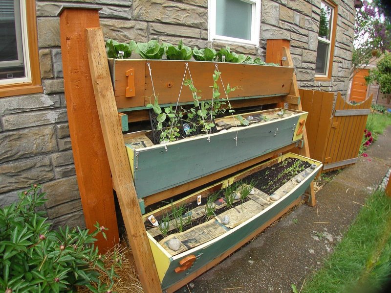 Вертикальные. Применяют на маленьких участках. Высота каскадных сооружений не ограничена. Компактные грядки дополнят ландшафтный дизайн частного дома, скроют недостатки неприглядных строений. Ухаживать за культурами в вертикальной конструкции можно, не испытывая физического дискомфорта. Грядки расположены на удобной высоте. Растения меньше болеют, не подвергаются нападению вредителей.