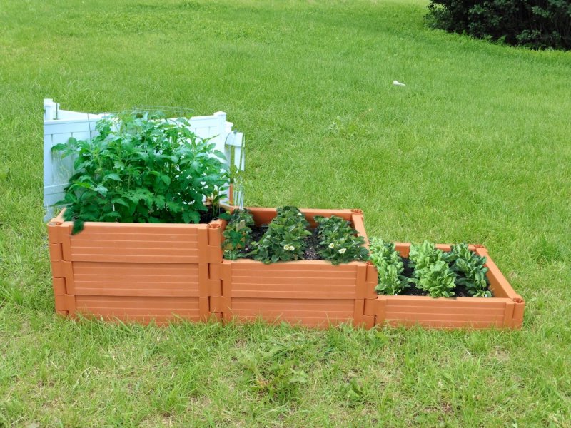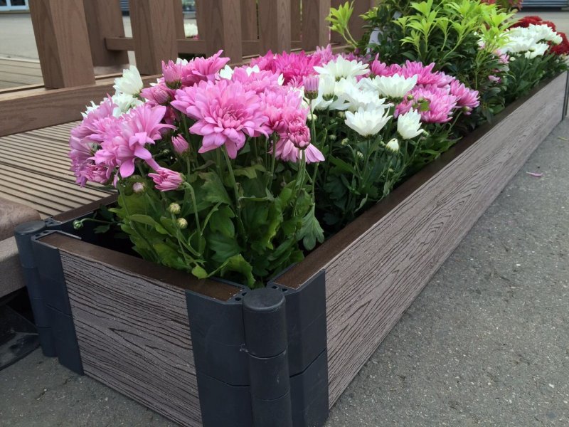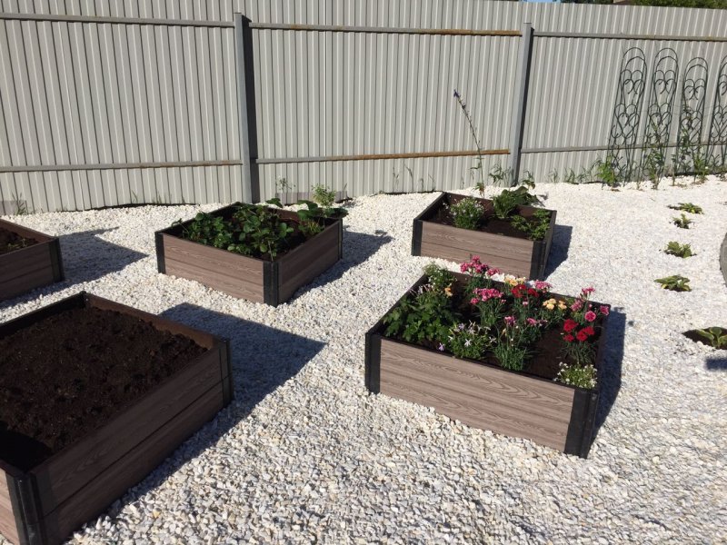 Новый технологичный материал отличается долгим сроком службы. Доски из смеси древесной муки и пластика применяются для возведения любых влагостойких конструкций в загородном строительстве. Грядки из террасной доски могут находиться под влиянием любых факторов окружающей среды. Материал спокойно переносит повышенную влажность, жару, морозы. Его геометрическая форма не изменяется, а микроорганизмы не проявляют к нему интерес. Террасная доска реализуется в большом ассортименте, различной длины, цвета, с наличием и без монтажных креплений.