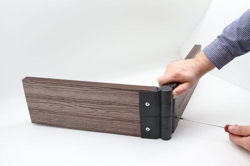 Собирать грядки из полимерного композита можно любого размера. Он легко распиливается ножовкой. Для соединения используют установочные лаги. Все детали соединяют оцинкованными саморезами и помещают в грунт. Выравнивание лучше проводить по диагонали. Для увеличения жесткости внутреннюю сторону конструкции надо снабдить дополнительными столбиками с шагом в 1 метр.
