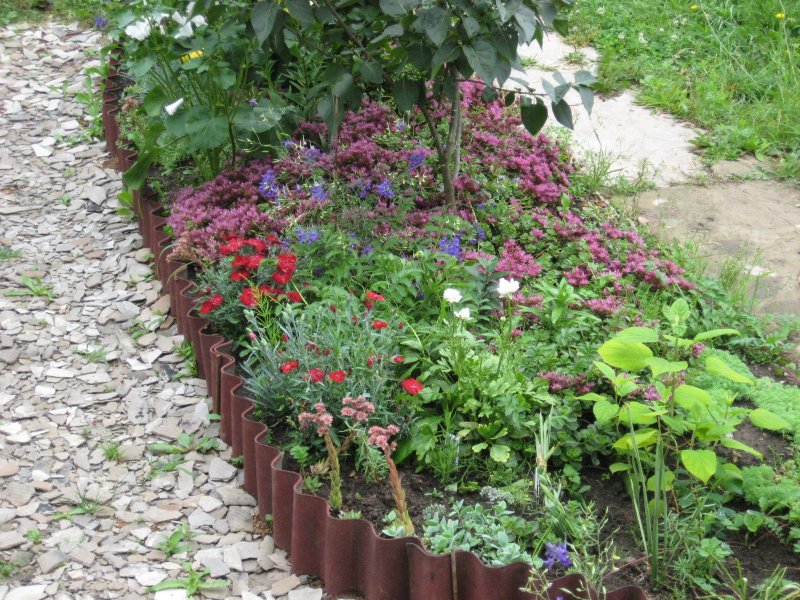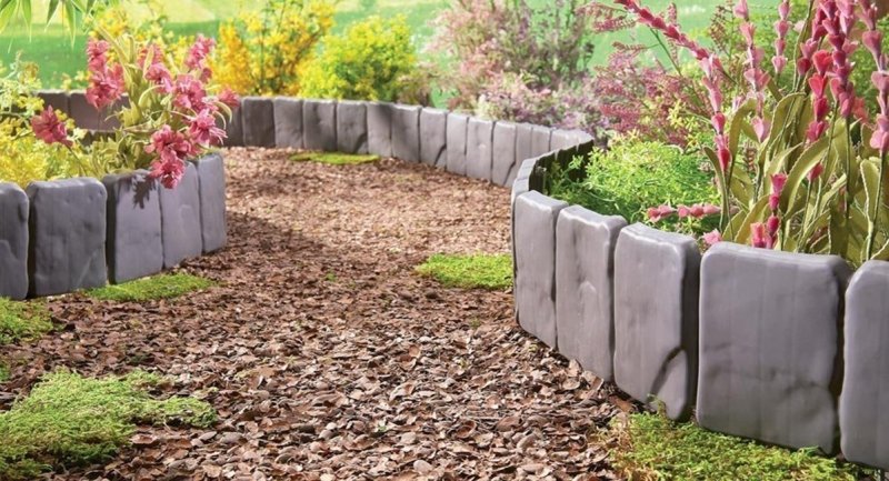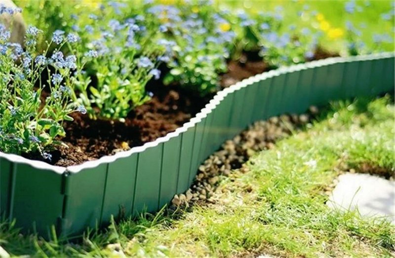 Бордюрная лента. В натянутом состоянии полимерное ограждение принимает вид бортика. Бывает различной ширины (0,1 м – 0,5 м). Из нее можно делать обычные и многоярусные клумбы. Недостаток – не выдерживает большой вес почвы;