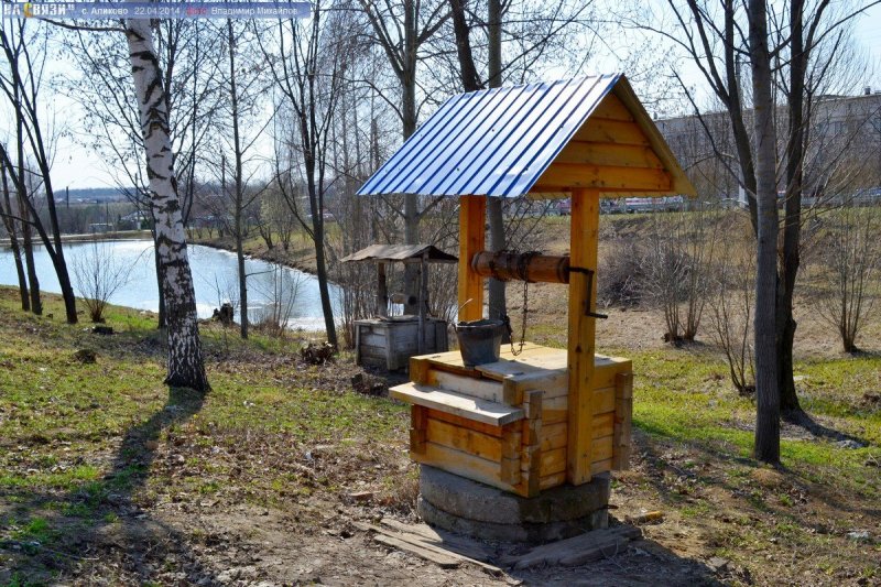 Русский. Представляет собой деревянный сруб, где в качестве подъемного механизма используется ручной ворот. Сверху обычно имеет крышу, укрытую древесной дранкой. Поверхность имеет резные украшения и роспись.