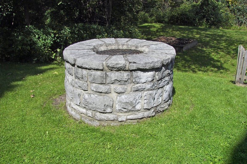 Для оформления можно использовать любое сырье. Самый экономичный вариант – воспользоваться остатками после строительства, например, бревном, кирпичом. Также подойдут любые подручные материалы, например: неочищенные от коры березовые бревна, выложенные по кругу, разных размеров камни; можно отлить оголовок из бетона, покрасить его; положить кирпичную кладку.
