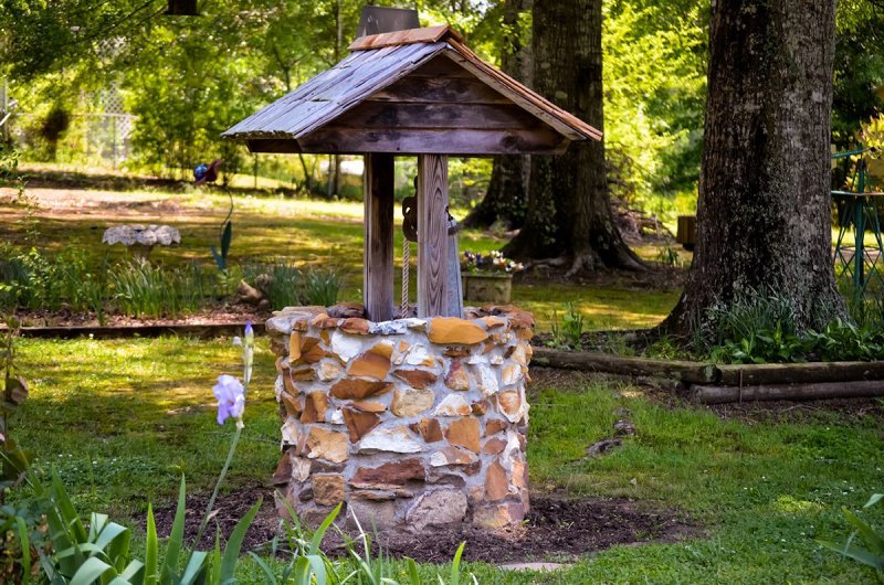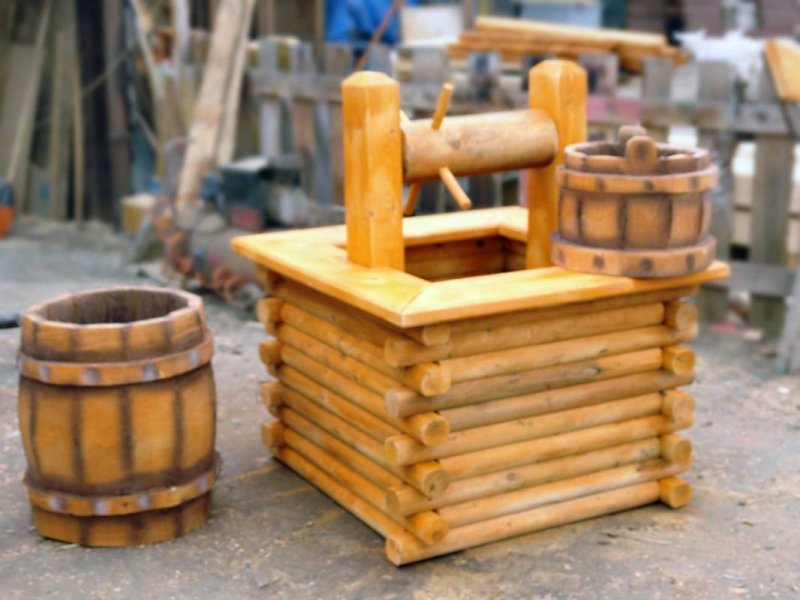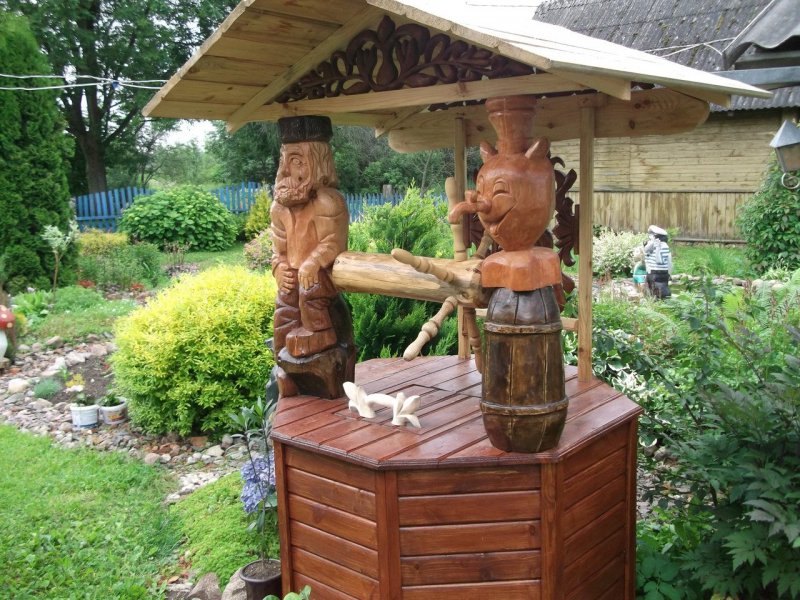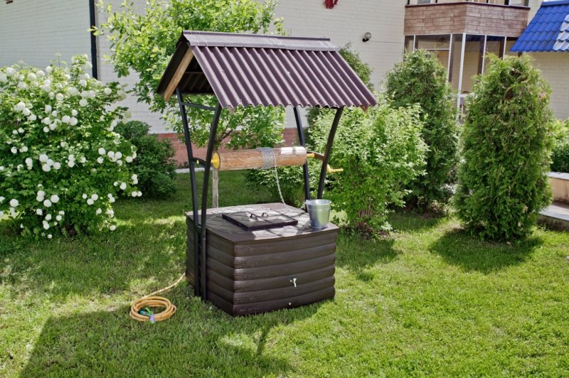 Декоративные. Используются для украшения участка, а также маскировки инженерных коммуникаций, в единичных случаях – как скважина с питьевой водой. Их можно дополнительно оформлять крышей, на которой высаживают ампельные растения.