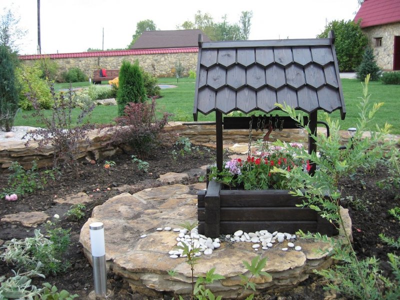 Ландшафтный дизайн представляет собой композицию всех элементов, расположенных на участке, будь то инженерный, биологический или культурный аспект. Каждая дорожка, цветник, строения обязаны соответствовать определенному стилю. Поэтому отделка колодца не должна противоречить общему виду участка.