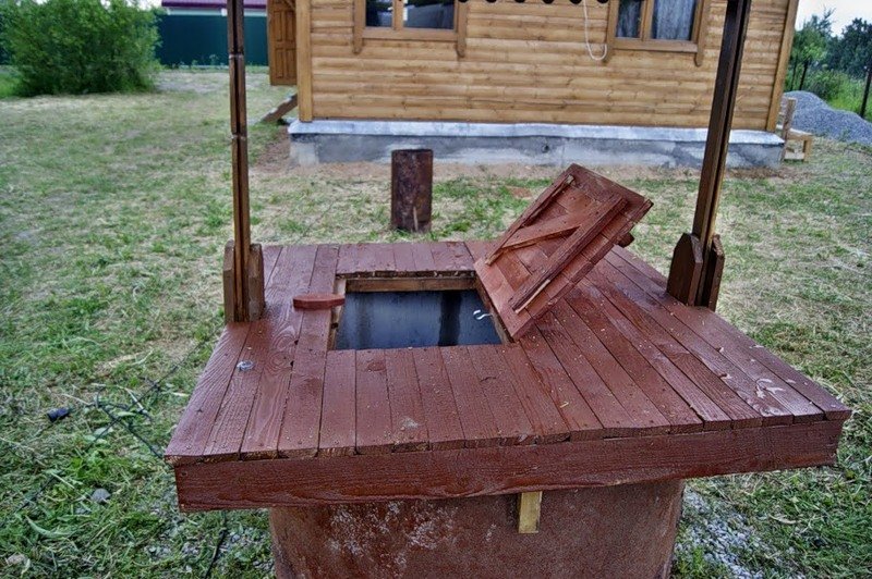 Облагораживать кладезь деревом – отличный вариант. Однако стройматериал имеет два важных недостатка – плохая устойчивость к влажной среде, является хорошей кормовой базой для вредителей. Поэтому перед тем как использовать сырье для облицовки, его необходимо обработать специальными лаками, антисептиками.