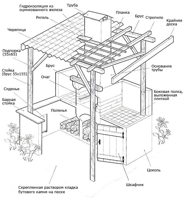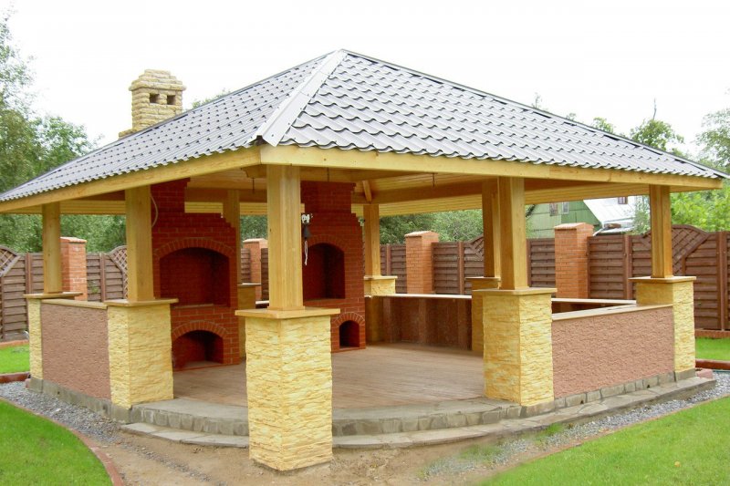Если беседка возводится одновременно с мангалом, то для ее постройки пригодятся: