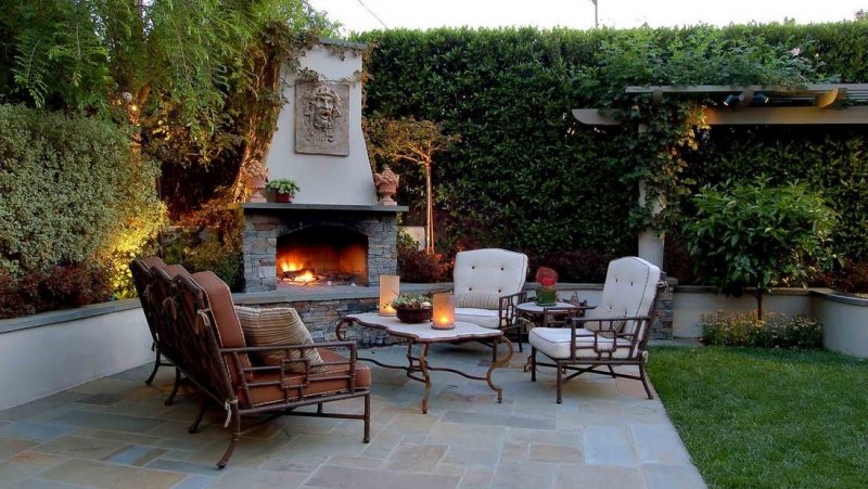 Конструкция не должна представлять опасности для жилого дома. Поэтому ее размещают как можно дальше и обустраивают элементами противопожарной безопасности. Дрова необходимо хранить в закрытой камере или на достаточном расстоянии от мангала, в защищенном месте. Сооружение размещают в нескольких метрах от зоны отдыха — летней кухни, террасы или беседки. Для защиты от осадков над мангалом можно возвести навес. Под ним смогут разместиться стол и несколько лавочек. Если на участке есть сад, клумбы или огород, то потребуется обезопасить их от температурного воздействия: плоды и цветы пострадают в первую очередь. Размещать мангал следует рядом с дорожкой, чтобы подход к нему был с двух сторон. Мусорные баки также держат на расстоянии. Еще одним важным моментом является изучение ветреной обстановки, чтобы избежать попадания дыма в окна.