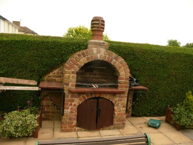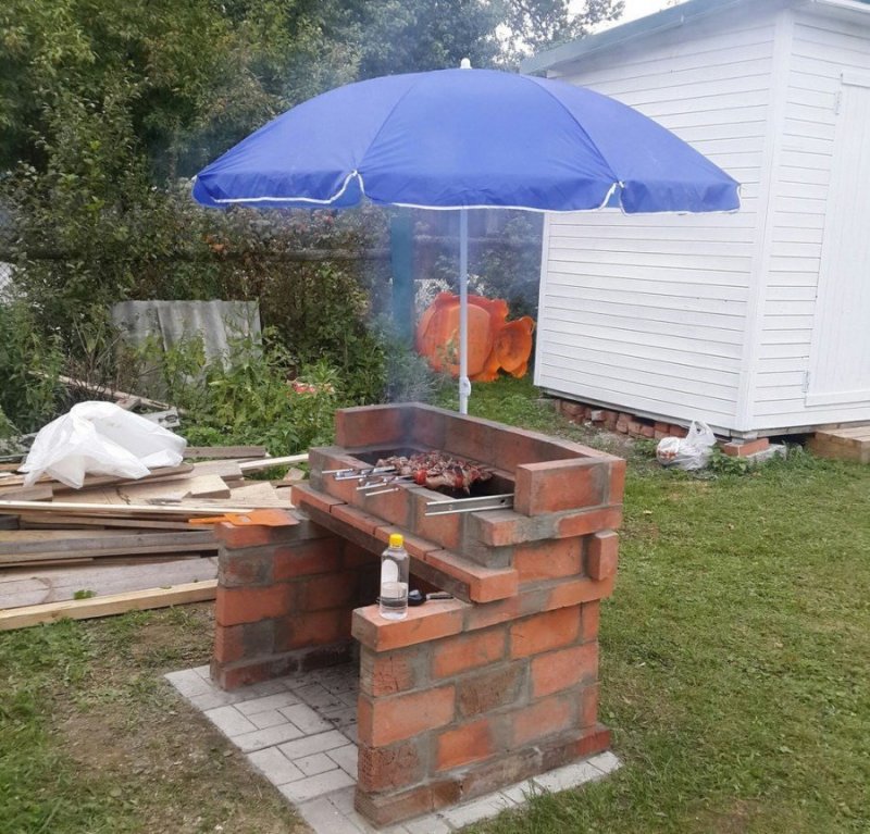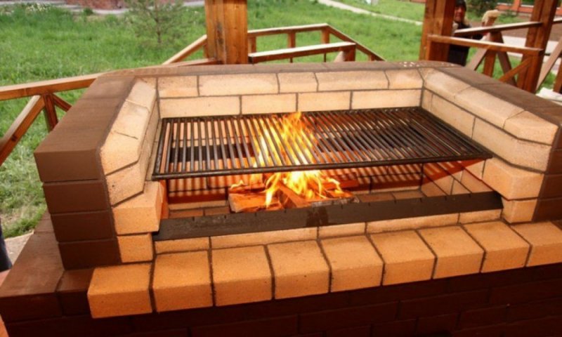 Главное отличие барбекю от мангала заключается в использовании шампуров. Барбекюшница имеет только решетку. Она отличается от обычного мангала отсутствием шампуров, а от гриля — отсутствием крышки. Небольшую кирпичную печь-барбекю может соорудить даже неопытный человек. С помощью данного приспособления можно жарить рыбу, мясо и овощи, а также коптить рыбные и мясные блюда. Наличие задней поверхности способствует более равномерному распределению тепла. Горение в барбекюшнице происходит в топке. Такой принцип работы позволяет переходить к приготовлению нового блюда в любой момент, так как после готовки температура еще долго будет высокой. Холодными весенними вечерами барбекю можно использовать в качестве источника тепла. Поэтому его лучше ставить рядом с беседкой или около летней площадки. Размещать кирпичное барбекю нужно вдали от деревьев и кустов.