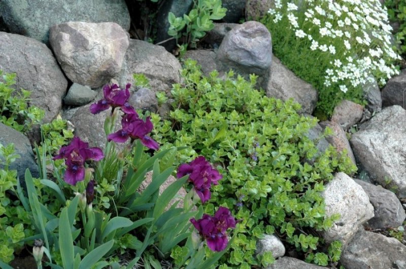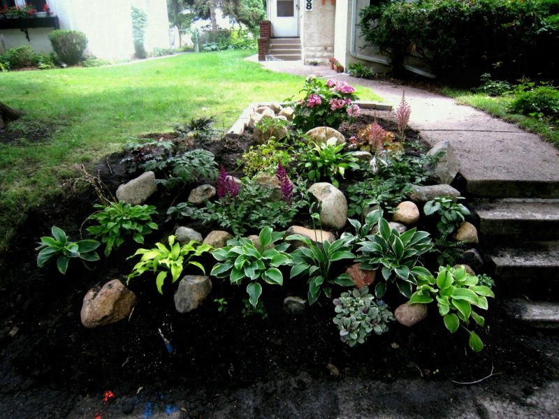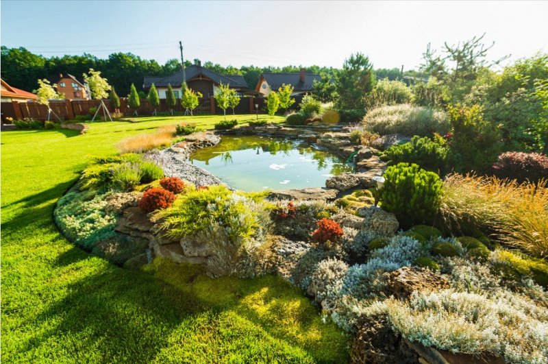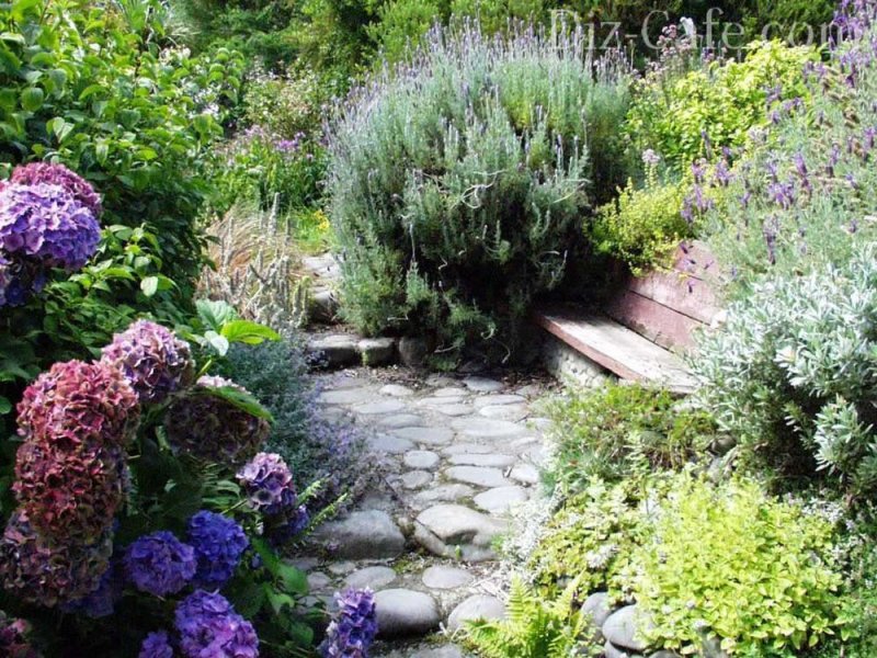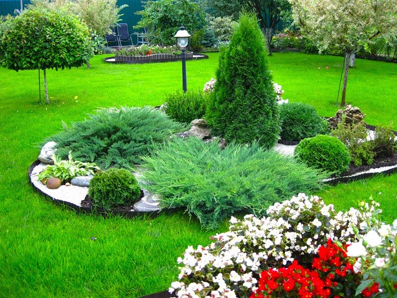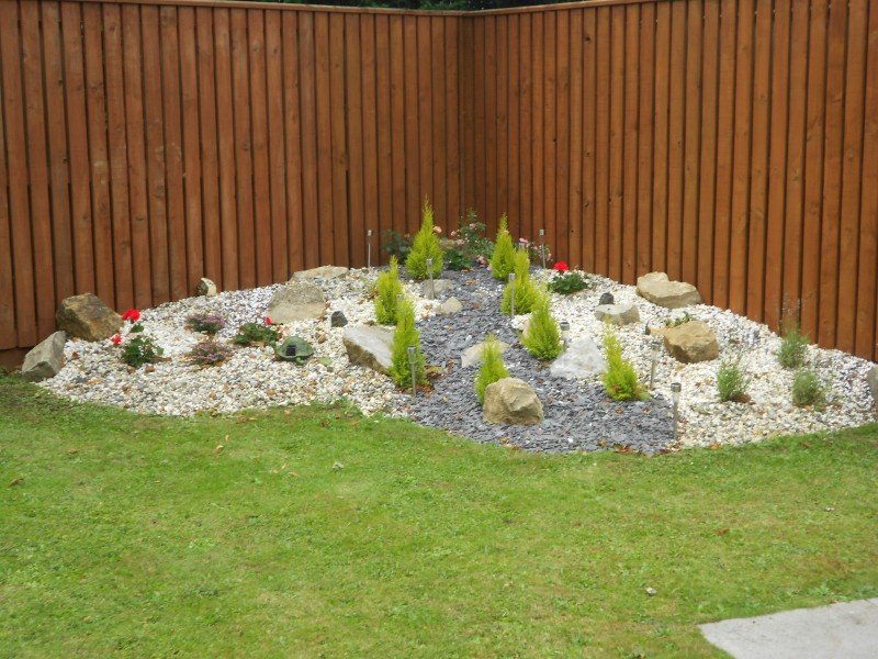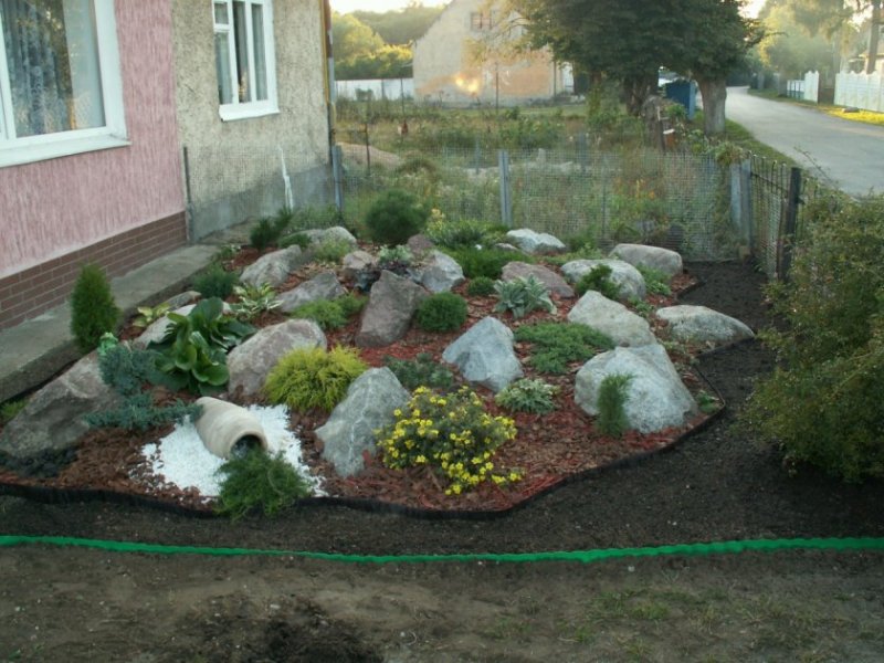 | 7 | Альпийский сад | Садик разбивают на наклонной или плоской поверхности, используют минимум камней | Акцент делается на кустарниках, ярких растениях |