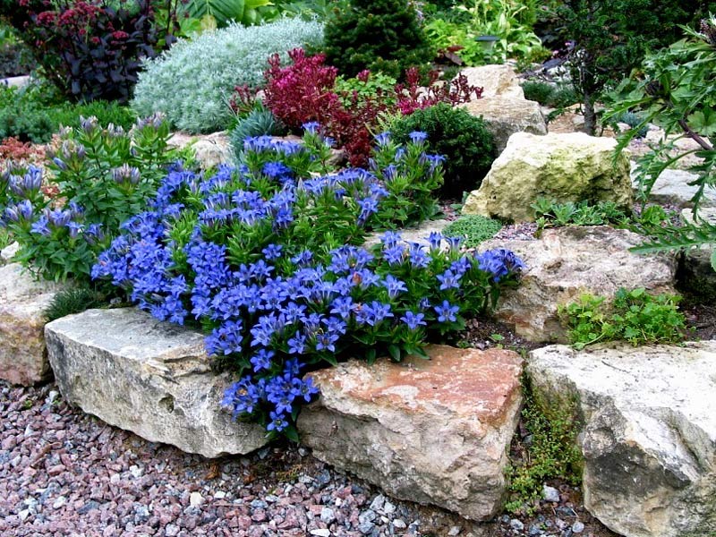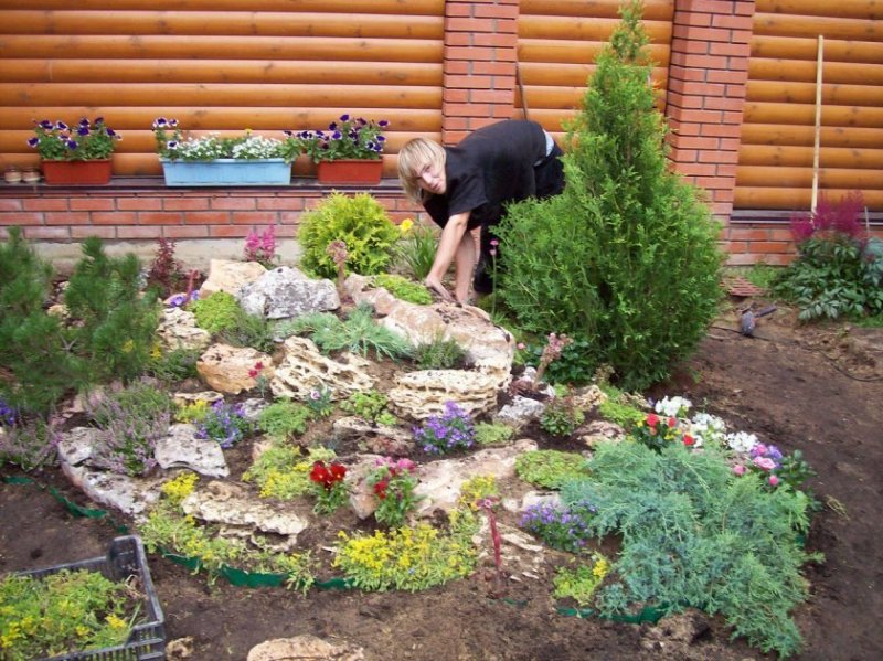 Альпинарий начинают засаживать с кустарников, хвойников и высокорослых растений, которые эффектно смотрятся у подножия, больших камней. Ниши для теплолюбивых саженцев утепляют мелким керамзитом.