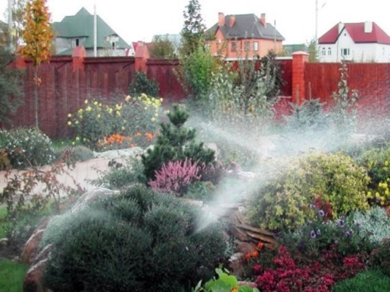 Если правильно подготовлен субстрат, выполнено мульчирование, то цветник поливают только в засушливый период. Мульча удерживает влагу, подсыпается раз в год. Для альпийской флоры подходит холодная вода, цветущим садовым и комнатным растениям нравится теплый полив. Облегчит уход за альпинарием капельное орошение. Систему орошения быстро монтируют своими руками из готовых наборов. Комплект состоит из микрошлангов с капельницами, по которым из накопительной емкости вода поступает к корням. Они лучше развиваются, улучшается внешний вид хвойников, укрепляется иммунитет саженцев. При капельном поливе не формируется корка, нет усиленного испарения, которое вредит цветущим насаждениям. Объем выпускаемой воды можно регулировать блоком управления.