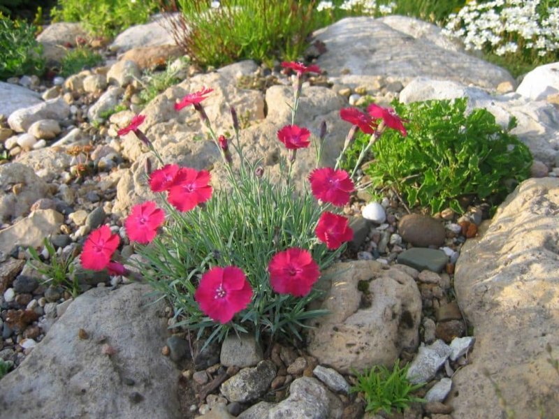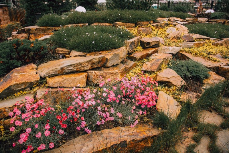 Для альпинария выбирают неприхотливые цветы: эхинацею, альпийскую гвоздику, скальный алиссум, молодило, зайцехвост. За капризными эдельвейсами, скальными колокольчиками сложно ухаживать.
