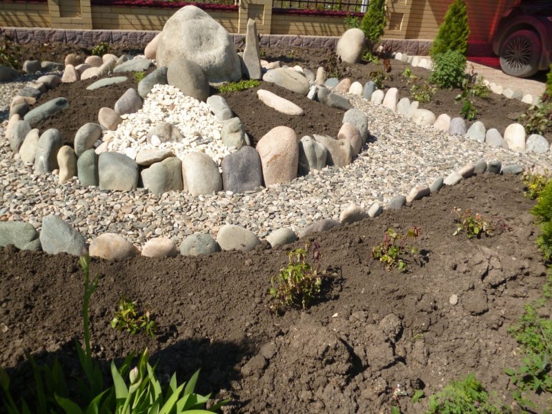 Эти этапы нельзя игнорировать, дренаж не только нормализует баланс влаги, но и работает как фундамент. Каменный цветник не просядет со временем.