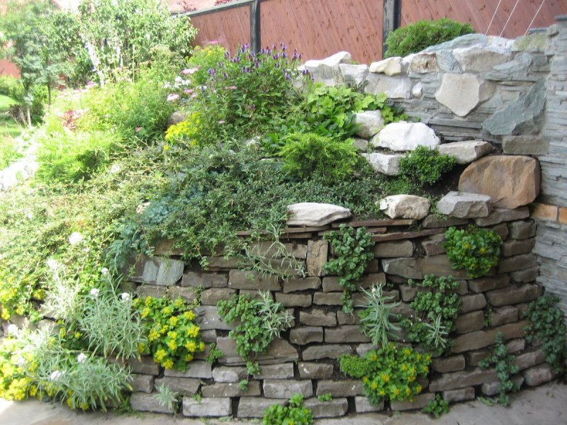 | 1 | Горная стенка | Применяют при строительстве террасированных склонов. В ниши и выемки, оставленные в каменной кладке и заполненные почвой, высаживают цветы, стелющиеся можжевельники | После создания стенку обильно поливают из пульверизатора до укоренения растений |