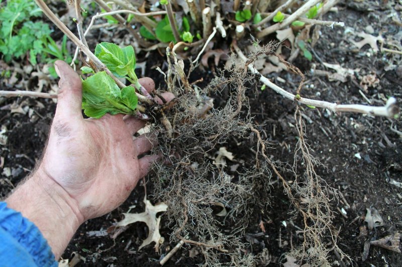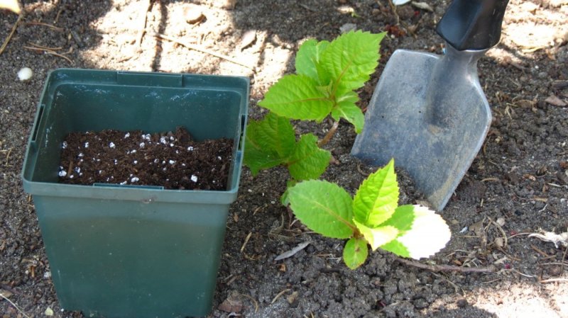 Высаживать гортензию рекомендуют весной. Почву можно подготовить еще осенью, хорошенько ее взрыхлив и добавив удобрений. Так как у всех видов гортензии (даже деревьев) корневая система поверхностная, то есть отростки не проникают глубоко в почву, предпочитая тянуться в стороны, достаточно ямы глубиной в 0,7 м. Место должно быть надежно защищено от ветра. Прямые солнечные лучи вынудят кустарник сохнуть, поэтому лучше выбрать полутень. Возможно, неподалеку растет высокое дерево с широкой кроной. Рассеянный свет, который будет проникать через листву — оптимальный вариант для гортензии.