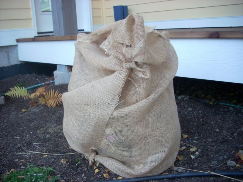 Можно использовать лапник. Кустарники высотой более 1 м необходимо подвязывать к опорам, чтобы снежный покров своим весом не сломал веточки.