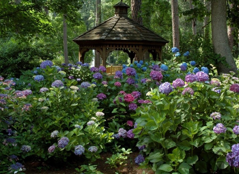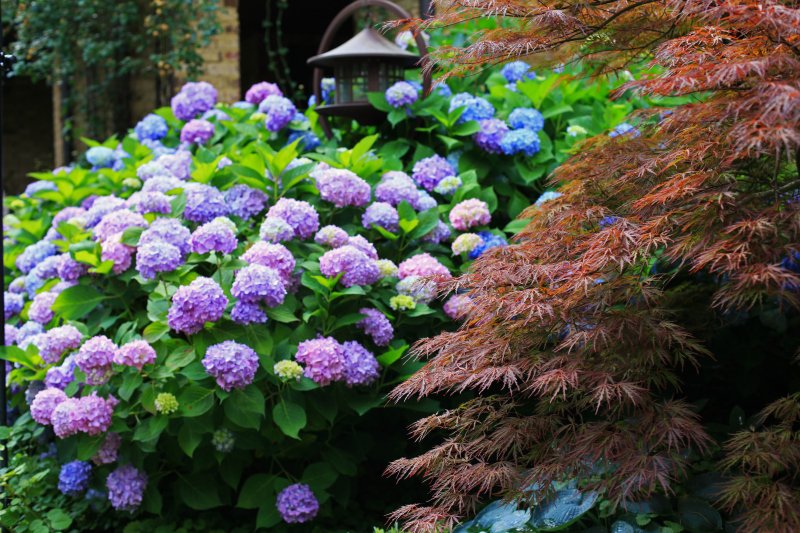 Гортензия универсальна. Ее можно интегрировать в любое стилистическое решение. Испортить цветами участок можно только в том случае, если они будут иметь неопрятный, неухоженный вид. Гортензия прекрасно подходит к японскому этническому стилю. В минималистичном оформлении она всегда была желанным гостем. Пышные соцветия дополнят пестроту сада, оформленного в стилях кантри, модерн, натургарден, этника. Последняя группа направлений заслуживает особого внимания. Гортензия органично вливается как в хаотичные, пышные насаждения мавританского стиля, так и в сдержанные, строгие английские композиционные ансамбли.