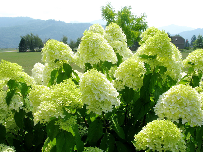Гортензия древовидная широко распространена на просторах Северной Америки. Кустарники вырастают до 3 м в высоту. Листья широкие, а соцветия собраны в пышные белые щеточки. Растение выносливо и может пережить кратковременный засушливый период. Предпочитает хорошо увлажненный грунт. Слабое место древовидной гортензии — чувствительность к сквознякам.