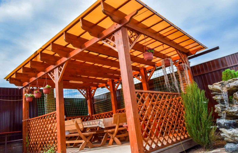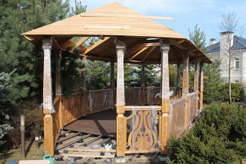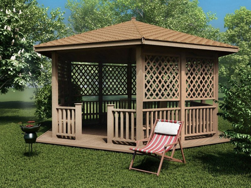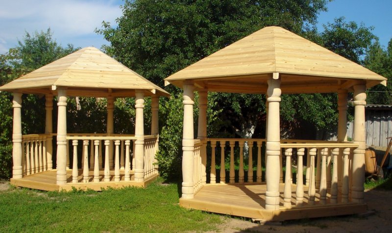 Среди огромного выбора древесины для сооружения беседок используют не так много пород: сосну, лиственницу, дуб, пихту, кедр. Это связано с тем, что постройка постоянно подвергается воздействию природных явлений. В большинстве случаев предпочтение отдают обработанным защитными антисептиками хвойным деревьям, так как они имеют наилучшее соотношение цены и качества, легки в обработке.