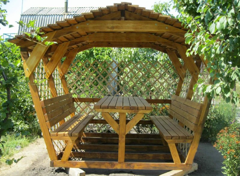 Построить беседку на своем дачном, придомовом участке – это всего лишь часть работы. Ее еще необходимо красиво оформить, выполнить внутреннее обустройство. Чтобы сделать сооружение максимально комфортным, можно использовать: