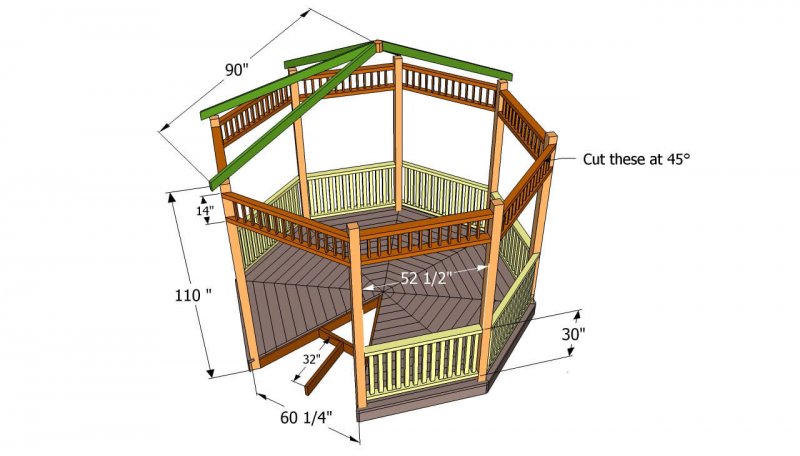 После того как стиль беседки, форма определены, можно переходить к проектированию и составлению чертежа. Можно позаимствовать образец у соседа, подсмотреть красивые эскизы в интернете или составить свой уникальный проект. Проведенные расчеты, отраженные на бумаге, помогут подготовить достаточное количество материалов, сэкономить время, правильно распределить свои силы.