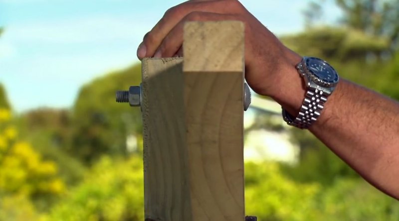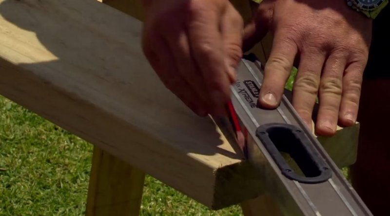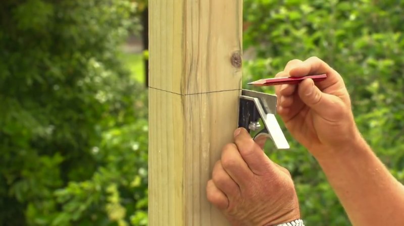 Фиксируют стойки в вертикальном положении на обвязку при помощи укосин. После завершения строительства их можно снять, чтоб косые балки не портили вид открытой конструкции. Если временные крепежи решено оставить и скрыть за элементами перил, их необходимо укрепить металлическими уголками.