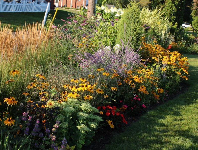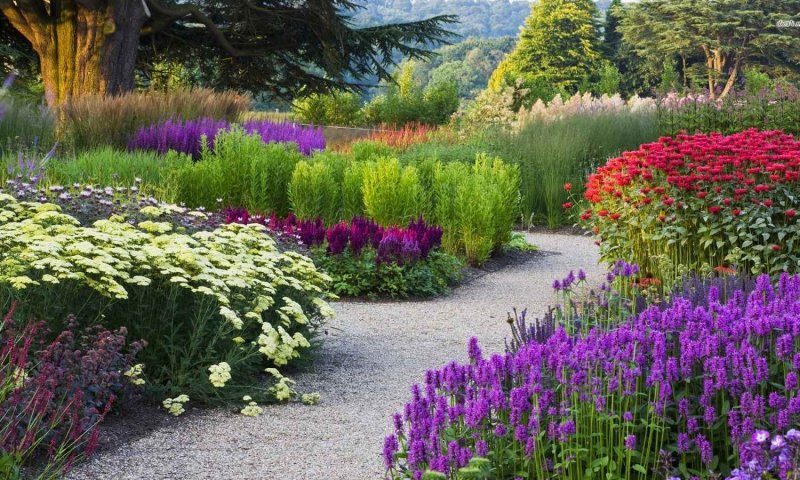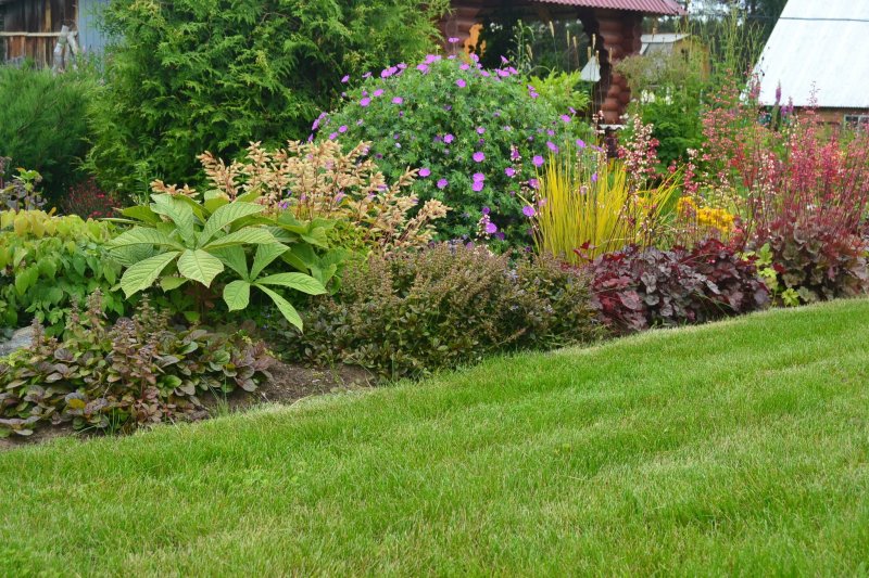 Миксбордеры. Располагают под окнами, вдоль дорожек. Композиции состоят из самых разных цветов;