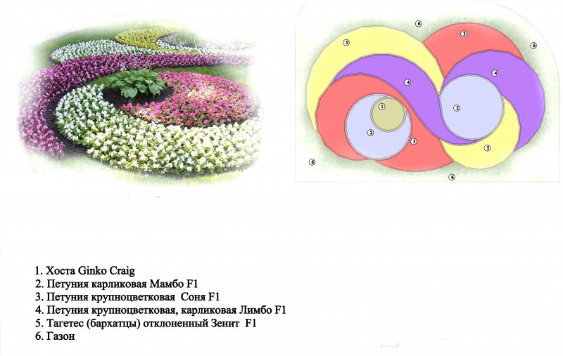 Кольцевая. Располагаются кольцом вокруг предмета (дерева, кустарника, большого камня). Чтобы продлить яркий цвет, растения чередуют по периоду цветения;