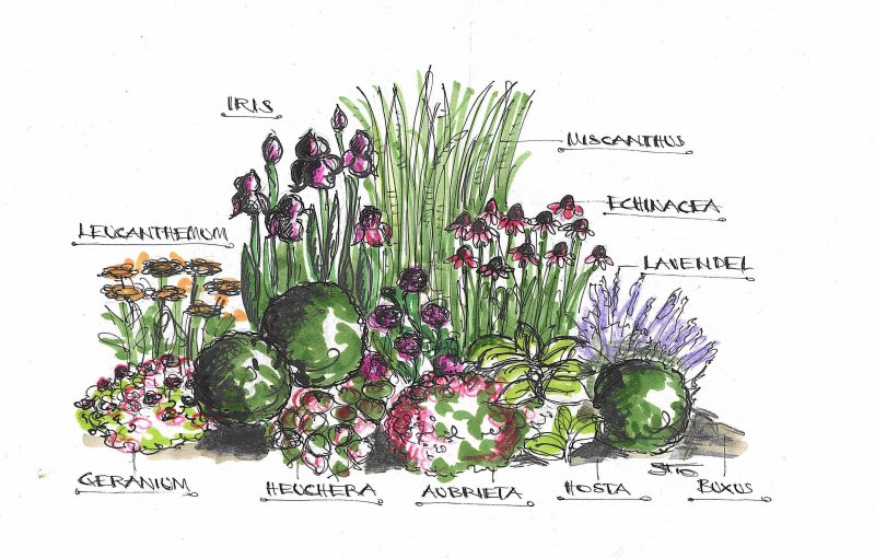 Перед подбором растений даже для самого простого цветника необходимо разработать подробную схему.