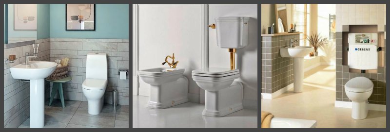 Модели с отдельно расположенным сливным бачком, например, когда он находится вверху, уже почти не используются, и в качестве альтернативы могут использоваться унитазы, в которых бачок прячется в стену, что позволяет получить оригинальный вид.