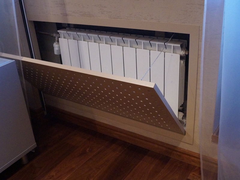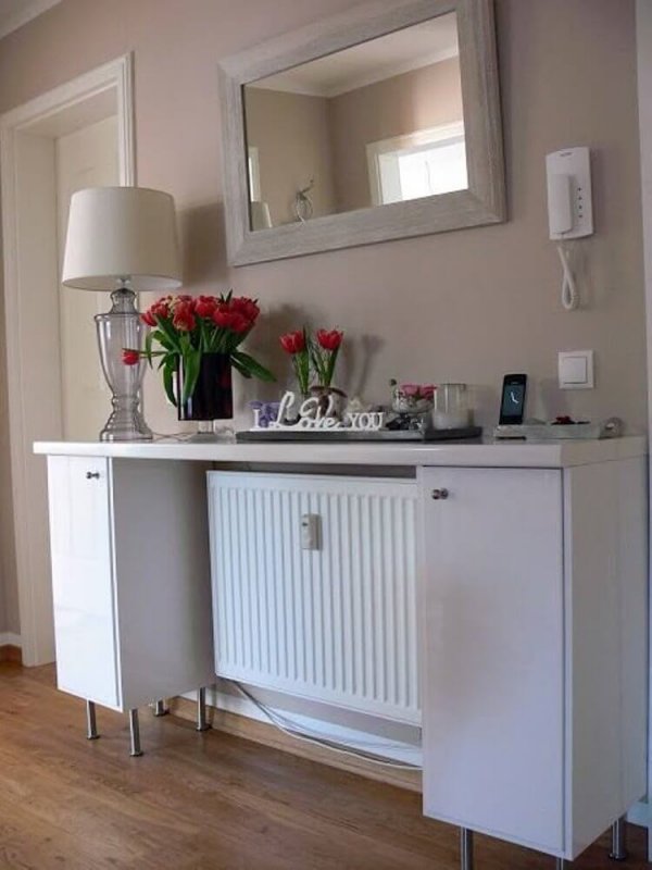 Как красиво спрятать батареи? Радиаторы отопления, это важный и обязательный элемент любого дома. Правда, порой их внешний вид не сочетается с общей композицией интерьера комнаты. Если Вы не знаете как красиво спрятать батареи, то данная статья для Вас! Содержание обзора: Решетчатый короб Столик Раскладной экран Ткань Фальш камин Туалетный столик Полка Шкаф Видео: Как красиво спрятать батареи? Решетчатый короб Батарея в виде решетчатого короба Столик Батарея в виде складного столика Раскладной экран Батарея в виде складного экрана Ткань Батарея декорированная тканью Фальш камин Батарея в виде камина Туалетный столик Батарея в виде туалетного столика Полка Батарея в виде полок Шкаф Батарея в виде шкафа Видео: Как красиво спрятать батареи?
