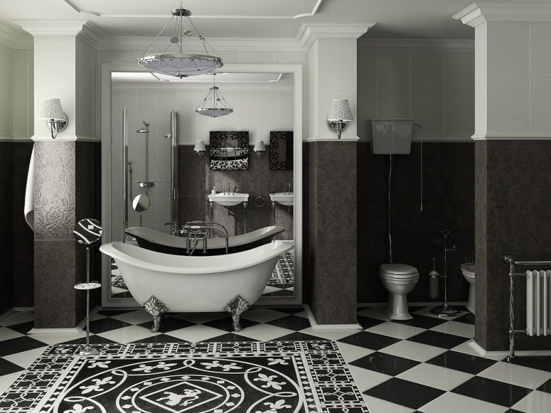 Белая ванна — это стандарт. Черная ванна — редкость. Может тогда черно-белая ванна? Белая ванна — это синоним чистоты и спа. Черная ванна — это настоящая и необычайная экстравагантность. Может быть, черно-белая ванна — это идеальное решение?