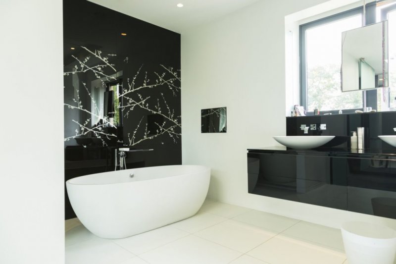 Конечно, вы можете также покрыть черной мозаикой или плиткой традиционную отдельно стоящую ванну или установить у стены. Черно-белая ванна будет стоить по нормальной цене, ее будет легко чистить, и она все равно обратит на нее внимание.