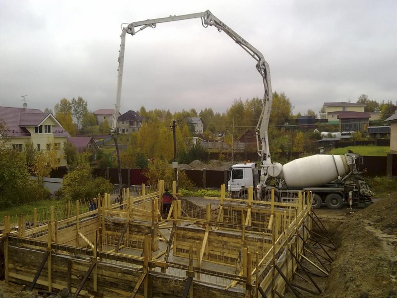После окончания заливки нужно уплотнить слой с помощью вибратора или стальной арматуры. Если замешивать строительный материал в бетономешалке прямо на месте и укладывать его в опалубку в несколько приемов, итоговое качество конструкции будет весьма сомнительным. Бетонирование напрямую из миксера позволяет в несколько раз ускорить работы. К тому же материал имеет равномерную консистенцию и укладывается в опалубку равномерно. Это гарантирует высокое качество бетонной конструкции, ее прочность и соответствие проектным требованиям.