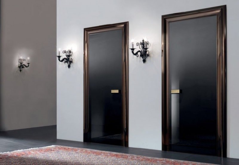 Двери имеют вставки из стекла или полупрозрачного пластика — это добавляет (подобно металлическим элементам) глубину и оживляет интерьер. Современные двери часто не уступают — создается впечатление, что они встроены в стену, оптически увеличивают пространство. На здж. над дверями, покрытыми натуральным шпоном, различные размеры дверных коробок. Серия Marco, Столбуд Wloszczowa (от прибл. 1153.comN)