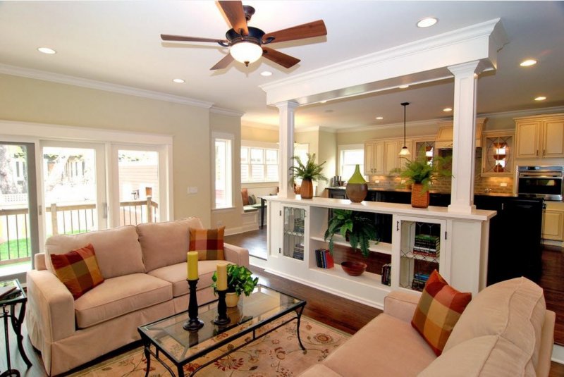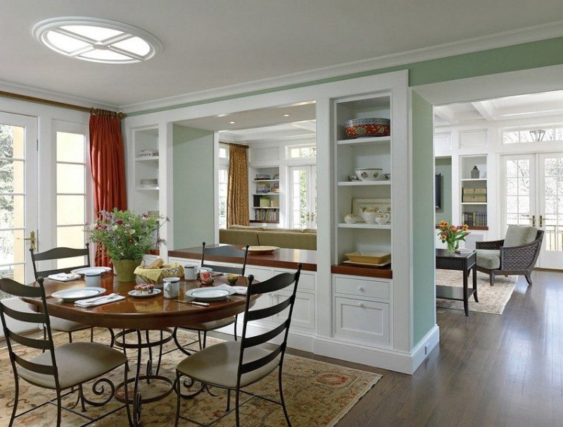 Перегородка между кухней и соседней комнатой – это не только способ зонировать пространство, она является частью общего интерьера дома. Подбирают ее, учитывая не только личные предпочтения, но и отличительные черты помещения. Для тех, кто склонен часто менять обстановку, можно порекомендовать использовать в качестве перегородки мебель. Каждый раз расставляя ее по-новому, они получат обновленный дизайн. Любители нестандартных вариантов оценят возможности стеклоблоков. Стильный и функциональный интерьер потребует раздвижных перегородок.
